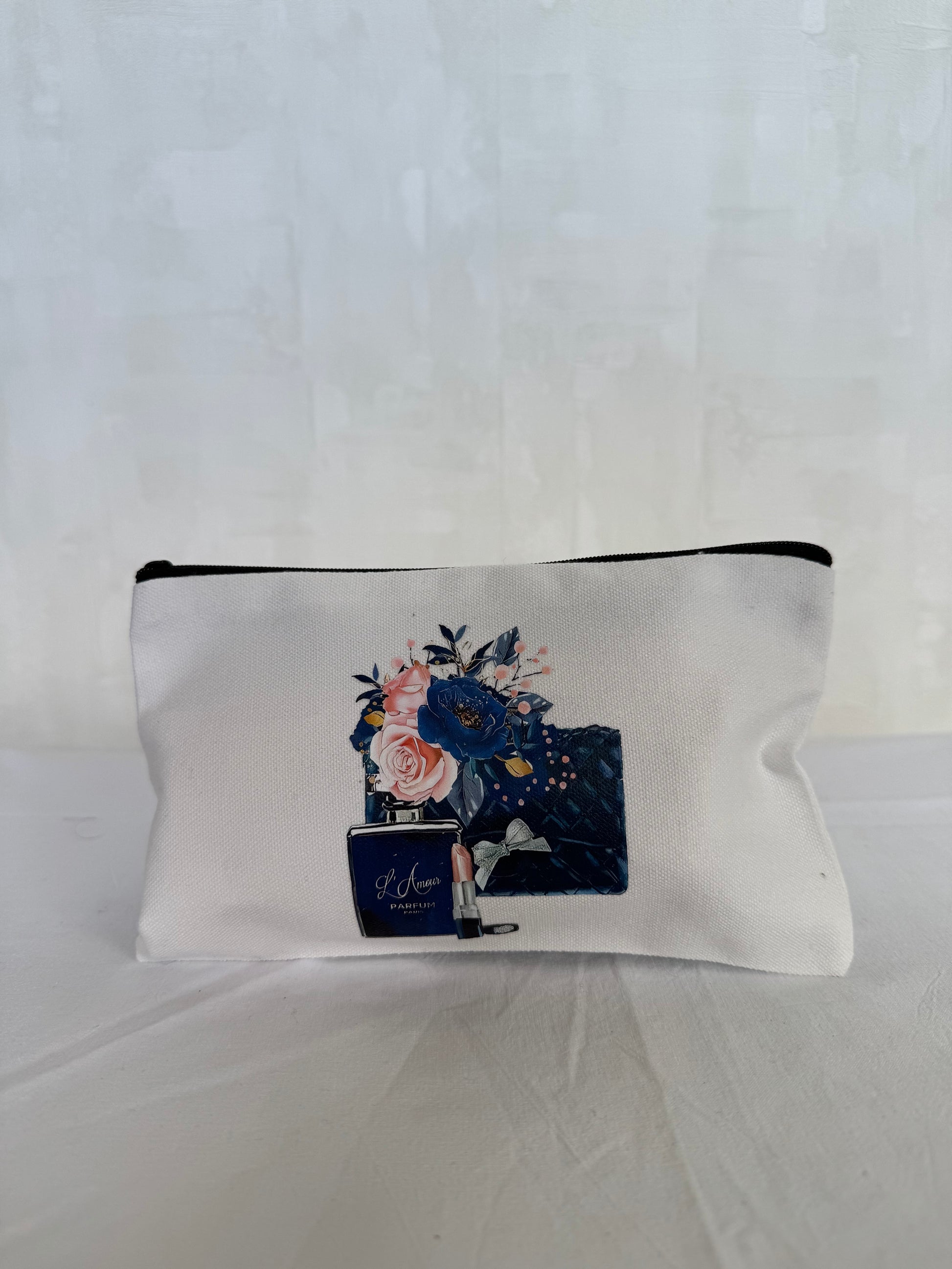 Élégante et pratique, cette trousse blanche en tissu est décorée d’un motif imprimé unique : fleurs, parfums, talons ou cœurs léopard. Idéale pour ranger maquillage, bijoux ou petits accessoires du quotidien.